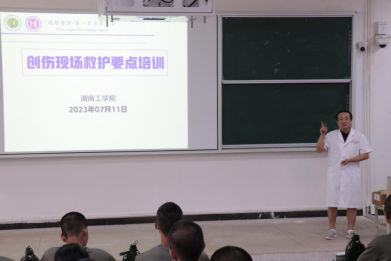 首先,珠晖区人民医院段科长强调了在意外事故突发性下正确迅速的反应对伤者生命安全的重要性。他详细讲解了常见的急救技巧,包括止血、包扎、固定、搬运、心肺复苏等。