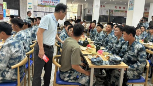 训练场上,队员们口号铿锵,动作利落。面对一张张晒得发红却写满坚毅的面庞,袁勤细致询问日常训练安排与队员们的身体适应状况鼓励队员们发扬优良作风,在刻苦训练中磨练意志、增长才干。队员们备受鼓舞,纷纷表示将以更加昂扬的斗志投入训练,不负重托,为圆满完成新学期军训任务打下坚实基础。