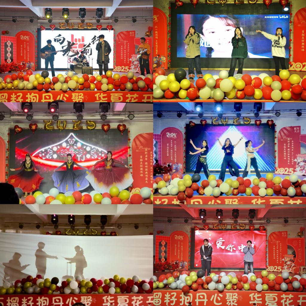 闭幕式后,文艺晚会热烈开场。歌曲《最美的太阳》讴歌了预科学生热烈青春;舞蹈《中华民族一家亲》展现各民族多彩风情、亲如一家;乐队合奏奏响向光前行的铿锵力量;说唱《天上的星星不说话》彰显年轻一代的逐梦理想与信心;街舞《灵动预科》尽显预科学生的蓬勃朝气;小品《预科那些事儿》幽默诙谐再现预科生活的喜乐场景;舞蹈《喜迎乙巳年》充盈对新一年的热情期盼;电信学院选送节目光影幕布剧《此时此刻我们的诗篇》展示青春校园光影生活;校团委选送节目二重唱《我爱你中国》,台上台下热情互动,唱出师生对祖国的热爱,将晚会推上高潮。预科女教师代表以《忆琼瑶·青春印记》为题,集体吟诵了琼瑶女士的部分经典作品,寄语青年朋友珍惜韶华,为晚会增添别样风采。