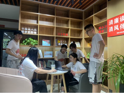 实践团成员到达社区后,在党支部书记宋诗妍的指引下,参观了清泉山社区办公服务场地,了解居民服务接待窗口、党建学习书屋、文体活动室建设情况。随后在社区会议室,讨论明确了此次实践活动的主要内容:线上线下联建“青年之家”、拍摄社区宣传片、开展个人政务实践。