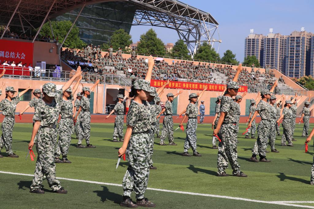 汇报表演由分列式和课目展示两个环节组成。分列式中,各学院方阵列队,迈着铿锵有力的步伐走过主席台前,彰显了新时代湖工学子拼搏向前、敢于争先的昂扬斗志和青春风采。