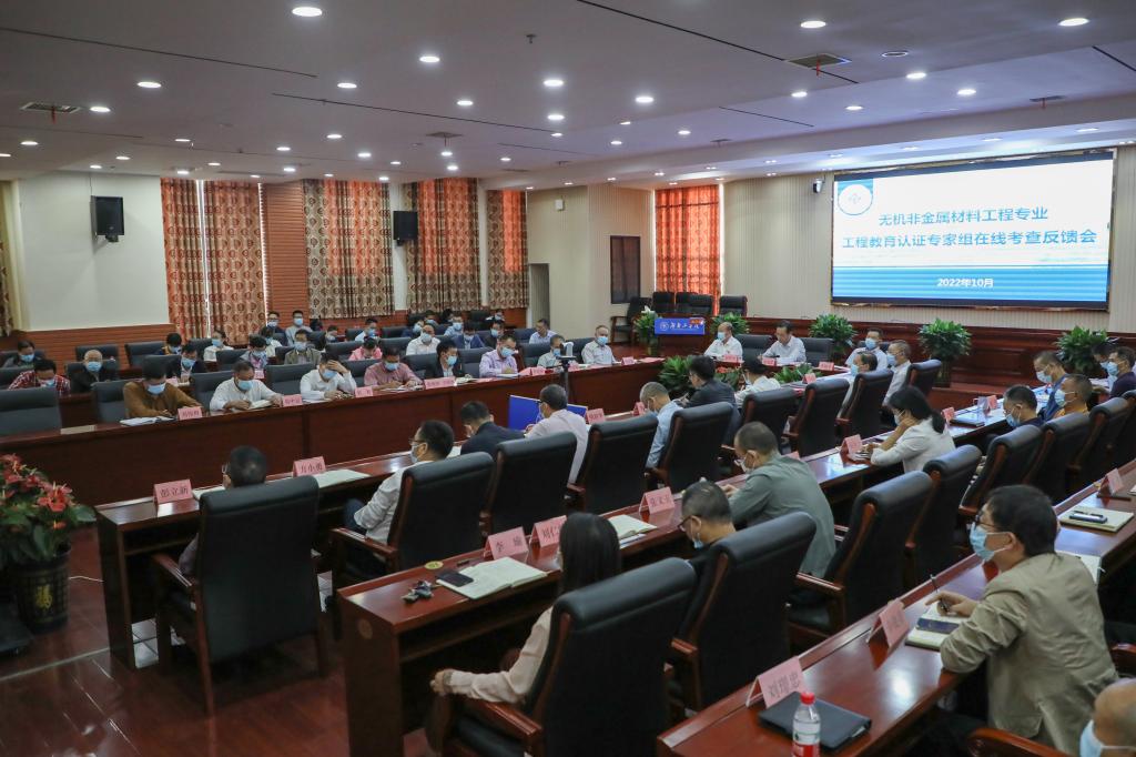 10月25日下午,WilliamHill官网召开无机非金属材料工程专业认证专家组线上考查反馈会,专家组组长黄佳木,专家组成员王敏、袁林、丁益、苏世怀、宋俊杰出席线上会议。校领导,材料科学与工程学院党政领导、无机非金属材料工程专业负责人及教师代表、相关党政管理机构和教辅机构的主要负责人、各二级学院院长参加了反馈会。