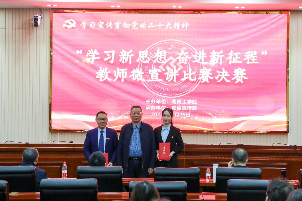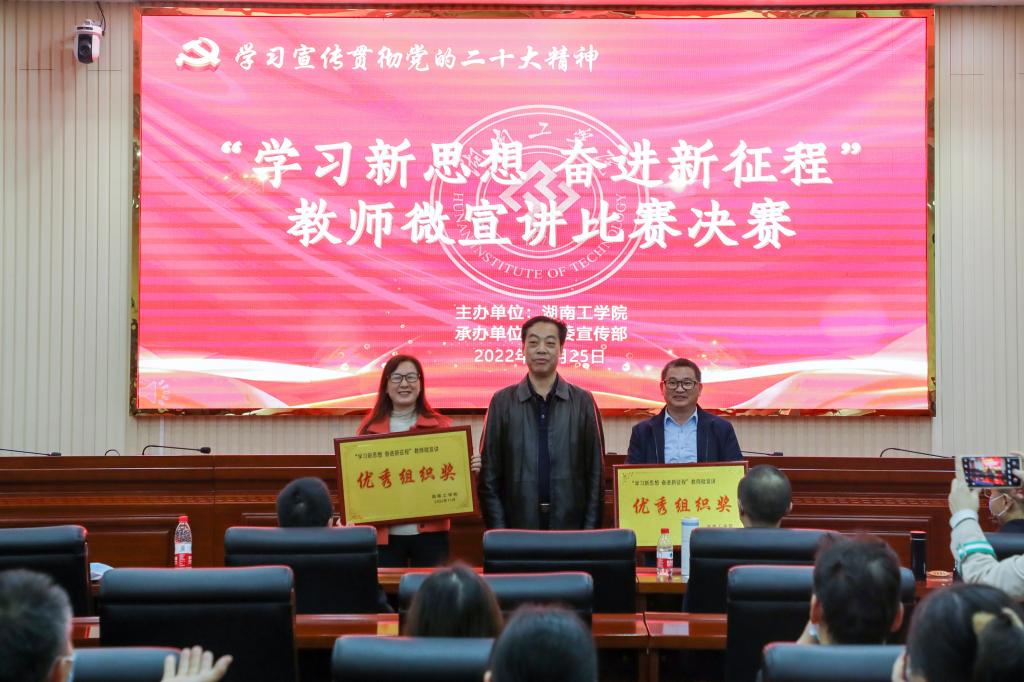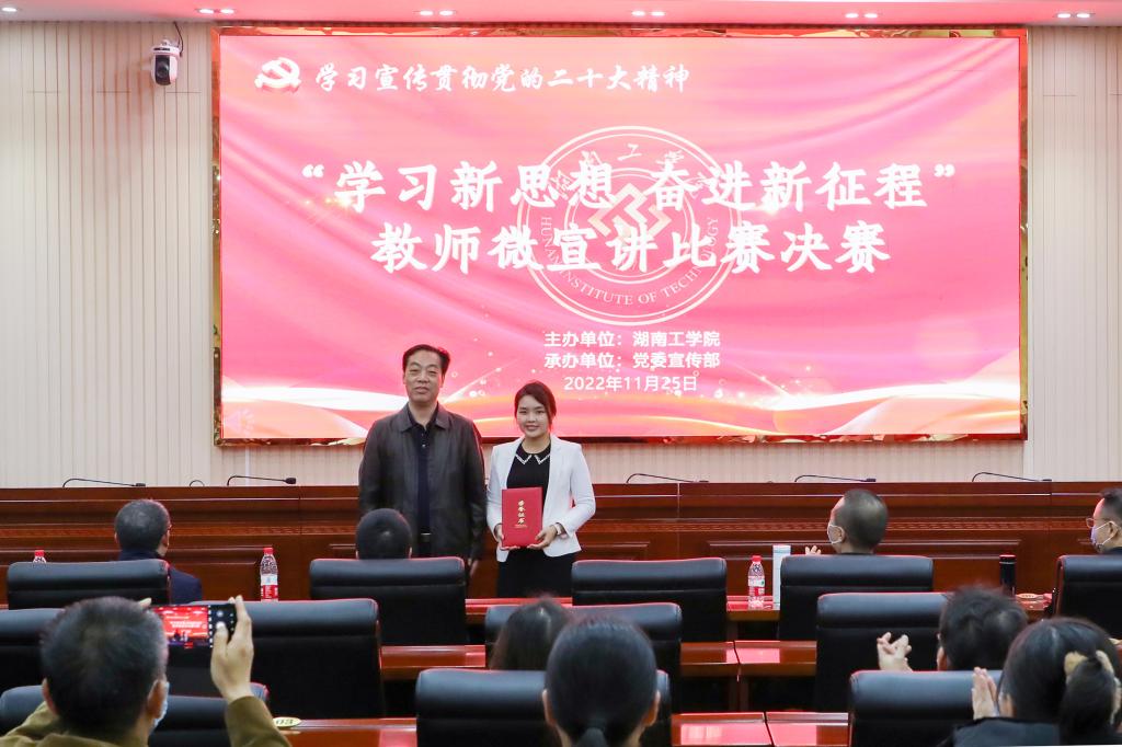 11月25日,WilliamHill官网在教学大楼船山报告厅举办“学习新思想 奋进新征程”教师微宣讲决赛,推动全校师生深入学习贯彻党的二十大精神走深走实。校党委书记宋克慧,党委委员、副校长、宣传部、统战部部长刘龙昌出席活动并为获奖选手颁奖。