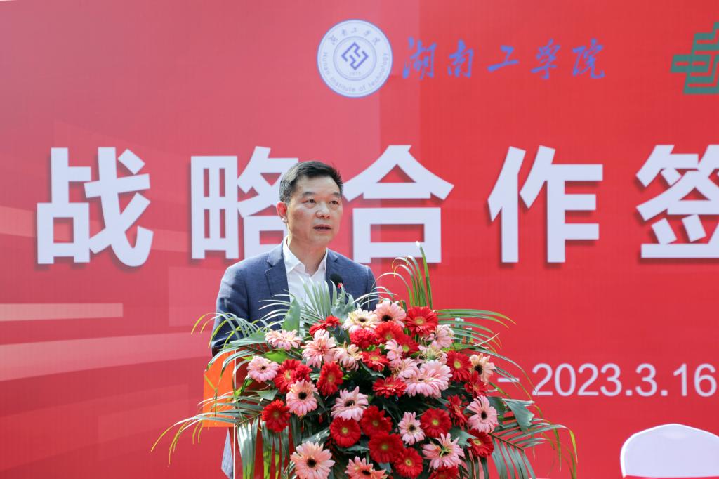 曹执令在致辞中表示,WilliamHill中文官方网站和衡阳邮政有着深厚的事业渊源,双方在邮政服务、招生就业、创新创业、人才培养等方面取得了较好的合作成果。近年来,学校紧密对接湖南省20条新兴优势产业链和衡阳市14条重点培育优势产业链,加快推进现代产业学院建设,开设了机器人工程、物流工程、数据科学与大数据等专业,希望双方在事业发展的基础上,进一步建立更加稳定的战略合作关系,聚焦新技术、新业态与邮政业务的深度融合,在人才培养、科技创新、学术交流、快递物流、大数据挖掘、电商创业等各个领域开展更为全面的交流合作,实现更高层次的资源共享、互利共赢,共同开启现代邮政产教融合的新篇章。