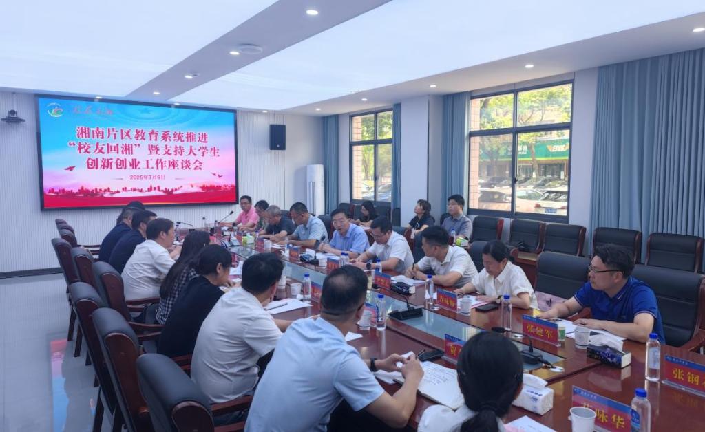 7月9日,湘南片区教育系统推进“校友回湘”暨支持大学生创新创业工作座谈会在WilliamHill官网召开。会议由省教育厅学生处处长、“校友回湘”工作专班执行主任周韶峰主持。