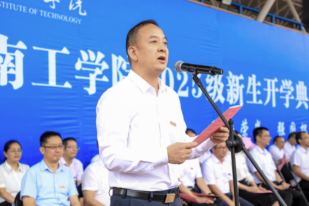 校党委副书记、校长曾广胜以《在AI时代,做不可替代的人》为题发表讲话。他指出,大学是同学们走向独立、走向成熟的最重要的阶段,面对人工智能席卷世界的时代浪潮,他围绕如何在AI时代成为不可替代的人,提出四点期望。一要深耕专业,锤炼“人无我有、人有我优”的硬核本领;二要拥抱AI,善用新技术赋能自我成长;三要拓展跨界思维,在融合中激发创新潜能;四要涵养人文精神,坚守价值理性与伦理底线。他勉励新生以勤学为舟、务实为桨、圆融为帆,追求卓越之境,在AI时代的大潮中锚定方向,成为既精通技艺,又富有创造力、责任感、人文情怀的不可替代的人,书写属于自己属于时代的精彩华章。