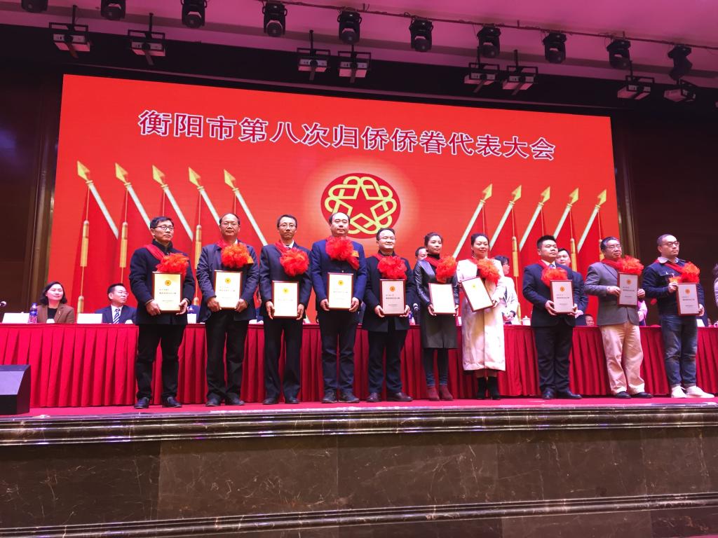 日召开的衡阳市第八届归侨侨眷代表大会上,市领导进行了现场颁奖。