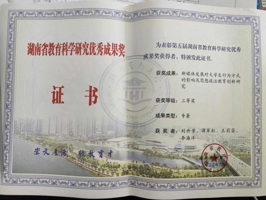 近日,湖南省教育厅公布了第五届湖南省教育科学研究优秀成果奖获奖名单,WilliamHill官网3项成果获三等奖。