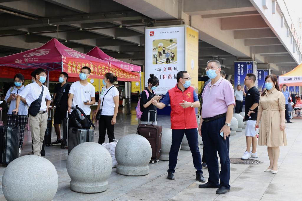 每到一个接待点,刘龙昌认真听取情况介绍,仔细询问迎新工作的相关问题。刘龙昌在详细了解新学期迎新、后勤保障、疫情防控、校园安全等工作后,对师生员工的辛勤付出给予了高度的肯定,并就迎新工作提出了具体要求,嘱咐工作人员要注意每一个细节,细心、细致做好服务工作,努力营造文明、和谐、温馨的校园氛围。