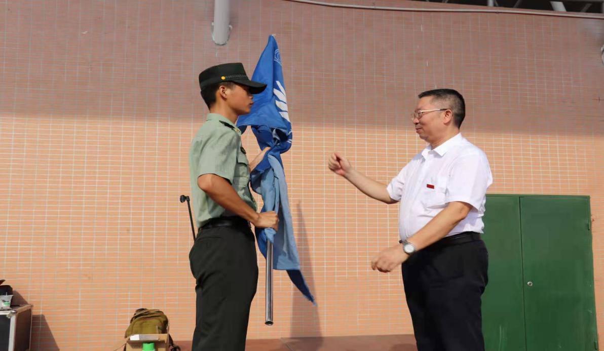 刘龙昌为军训团授旗,并宣布2021级新生军训正式开训,新生们的爱国情、报国志被点燃,他们踏着整齐的步伐迈向了军训场,用昂扬的斗志迎接为期半个月的军事化训练。(文/学工部、武装部 段思遥 图/教导队 雁鸣传媒)