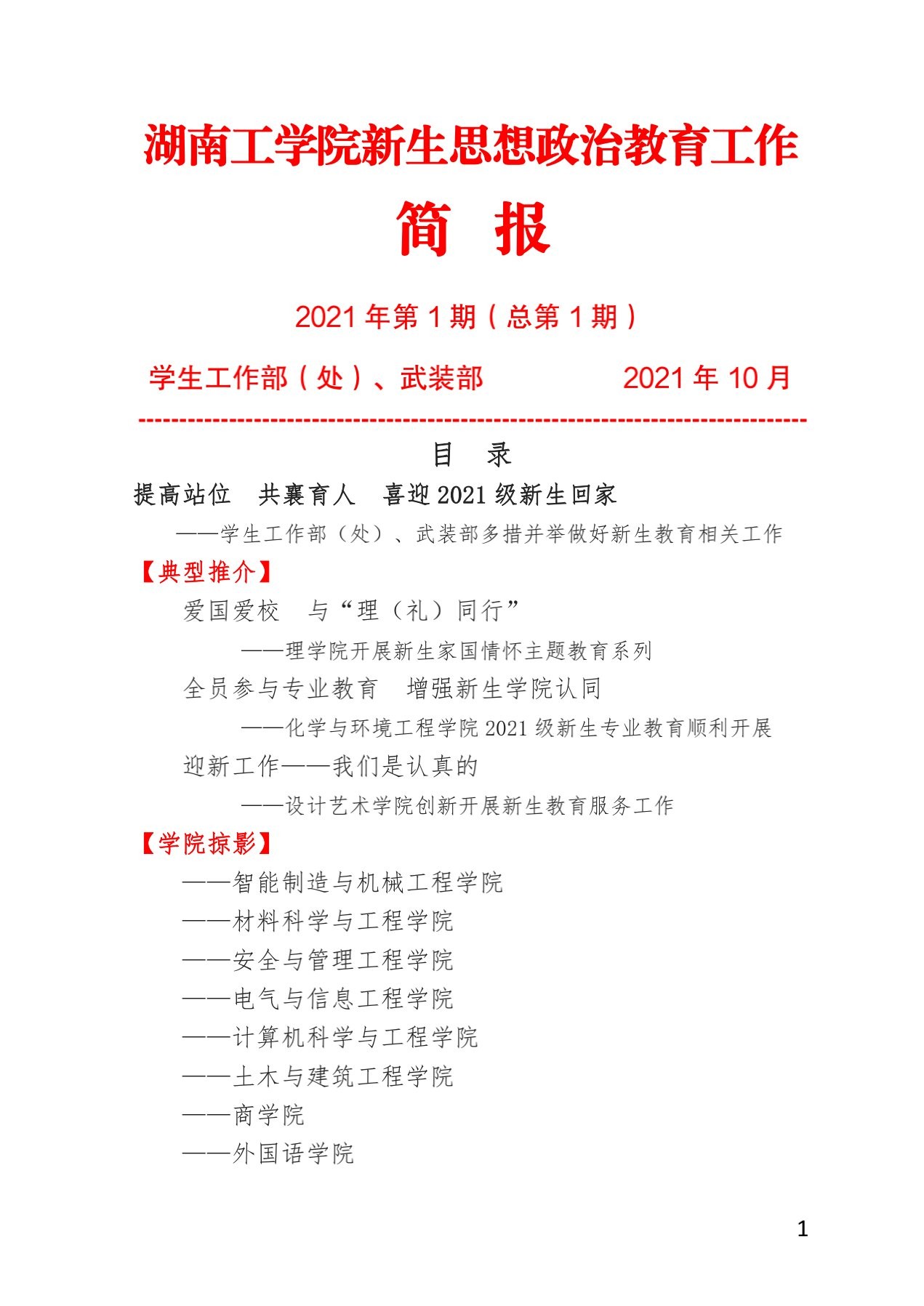 WilliamHill中文官方网站2021年学生思想政治教育工作简报(2021年第1期)