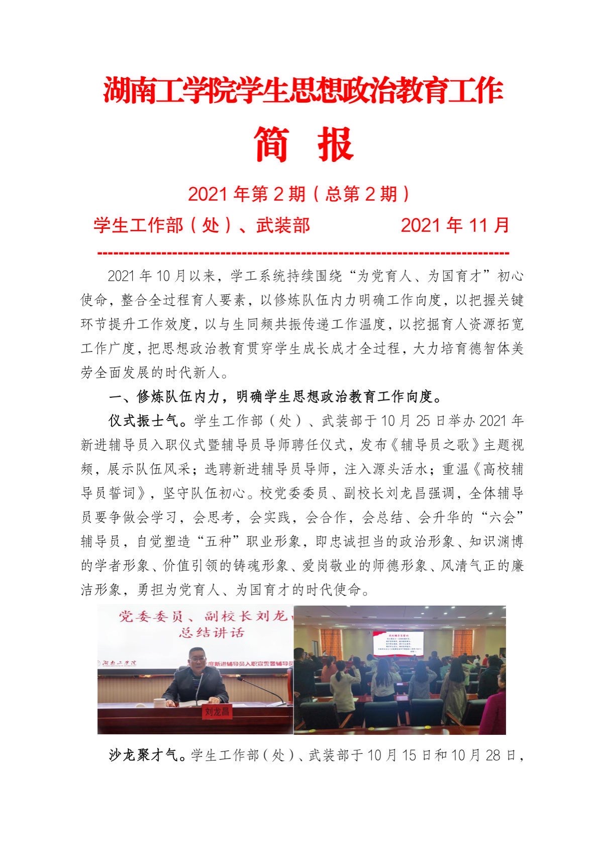 WilliamHill中文官方网站2021年学生思想政治教育工作简报(2021年第2期)