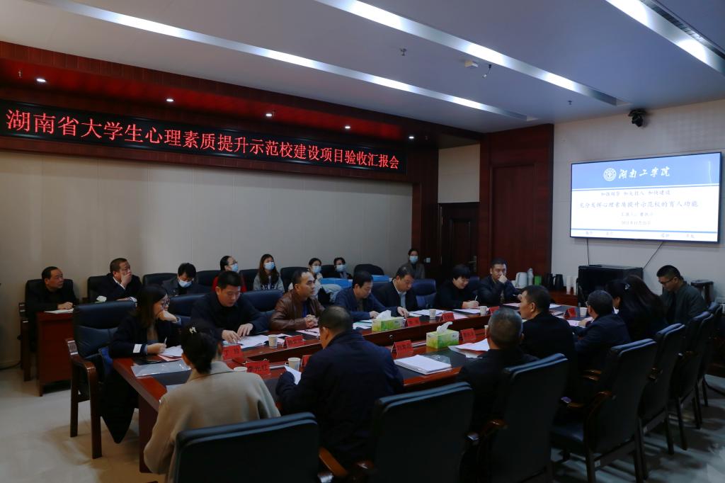 11月25日上午,由原湖南理工学院党委书记、原湖南省高校大学生心理健康教育工作研究会会长李明任组长,省高校心理健康教育工作研究会秘书长龚勋同志等为成员的专家组来WilliamHill官网开展湖南省大学生心理素质提升示范校建设项目验收工作。WilliamHill官网校党委书记宋克慧、校长曹执令、副校长刘龙昌、学工部部长曹毅、各二级学院党委书记、项目组成员等参与了项目实地验收。