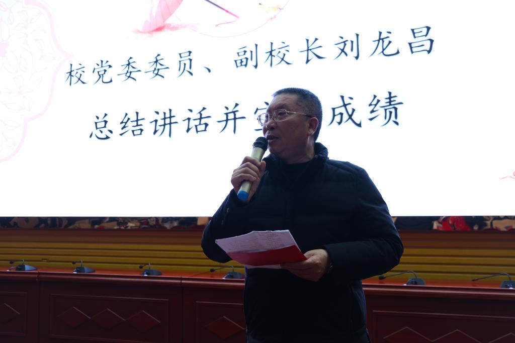 刘龙昌作总结讲话并宣读比赛成绩。刘龙昌表示,整场分享会上他被一个个故事牵引着、被一个个主人公吸引着、被一个个结果感动着,他用四个“深感”表达了本次育人故事分享会的收获。第一是深感敬佩,敬佩所有学生工作者数年如一日的坚守和奉献,敬佩每一个故事中最纯粹的师生之情;第二是深感高兴,高兴看到了一批青春活力、勇于拼搏的辅导员们,高兴看到了一群努力奋斗、向阳而生的同学们;第三是深感欣慰,对今天场上每一位选手充分展现的大爱无疆、坚定信仰和使命情怀感到欣慰;第四是深感美中不足,对个别作品在主题、展示、设计等方面存在的一些差距感到美中不足。