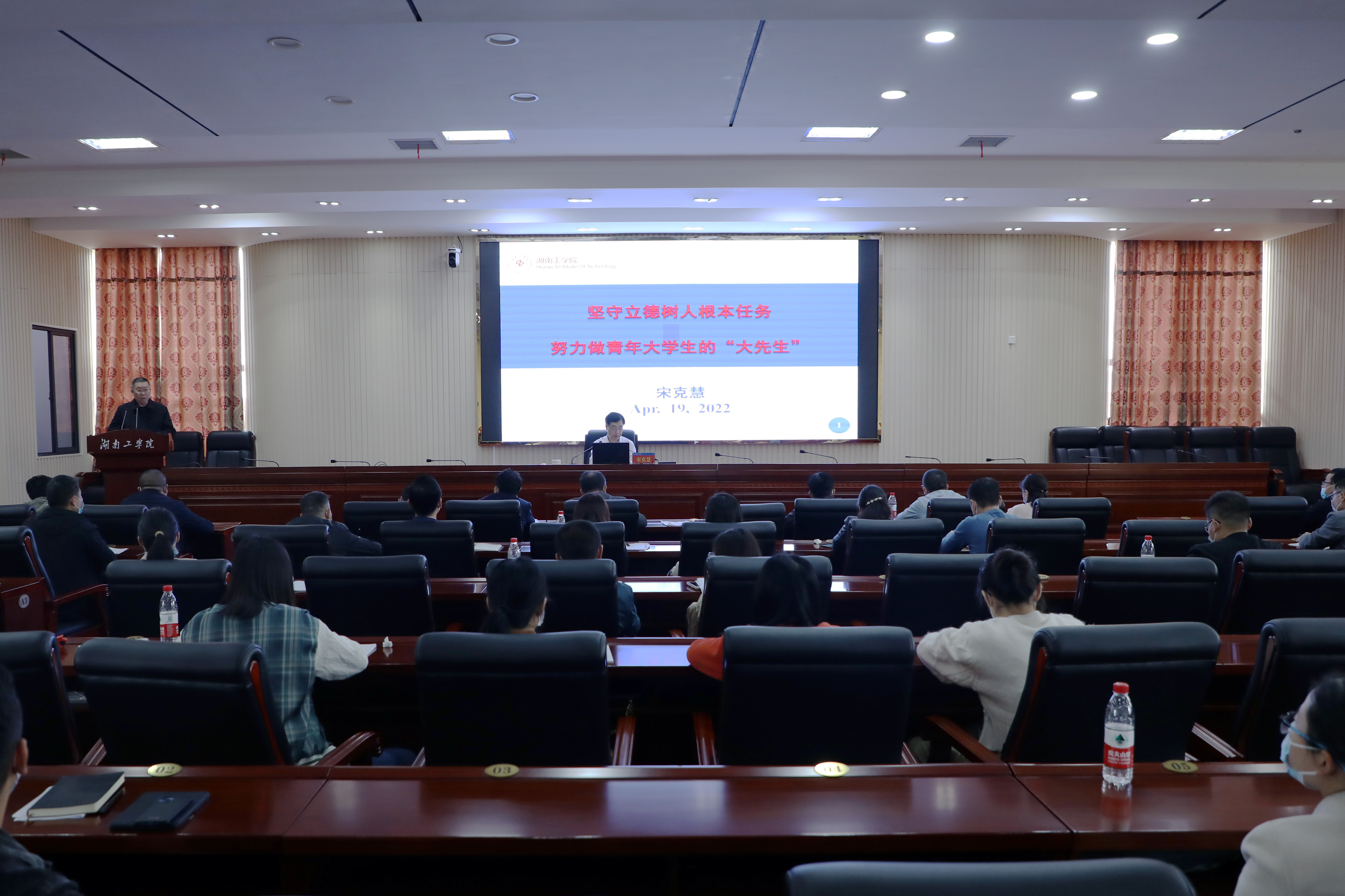为深入学习贯彻全国高校思想政治工作会议精神,切实提升WilliamHill官网学生思想政治工作队伍职业化、专业化水平,4月20日下午,全校学生思想政治工作队伍专题培训在教学大楼12楼报告厅举行,党委书记宋克慧出席并作专题报告。党委委员、副校长刘龙昌主持会议。