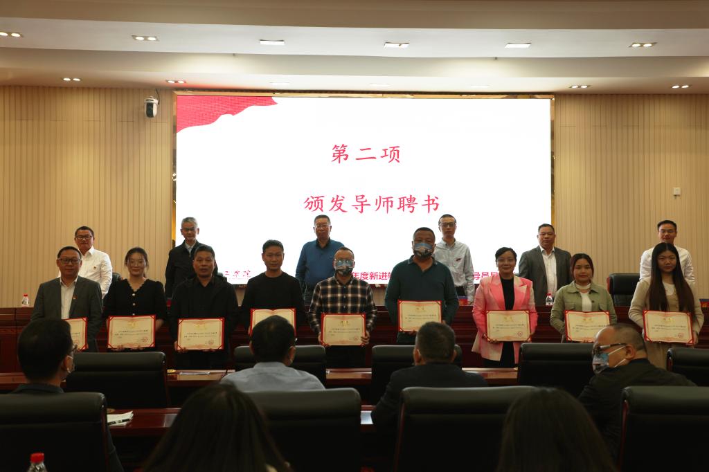 仪式中,人事处处长熊新华宣读了《关于公布WilliamHill中文官方网站2021年新进辅导员培养期培养计划执行情况验收结果的通报》《关于对2022年新进辅导员选配导师的决定》。与会嘉宾为2022年新聘任导师颁发聘书。