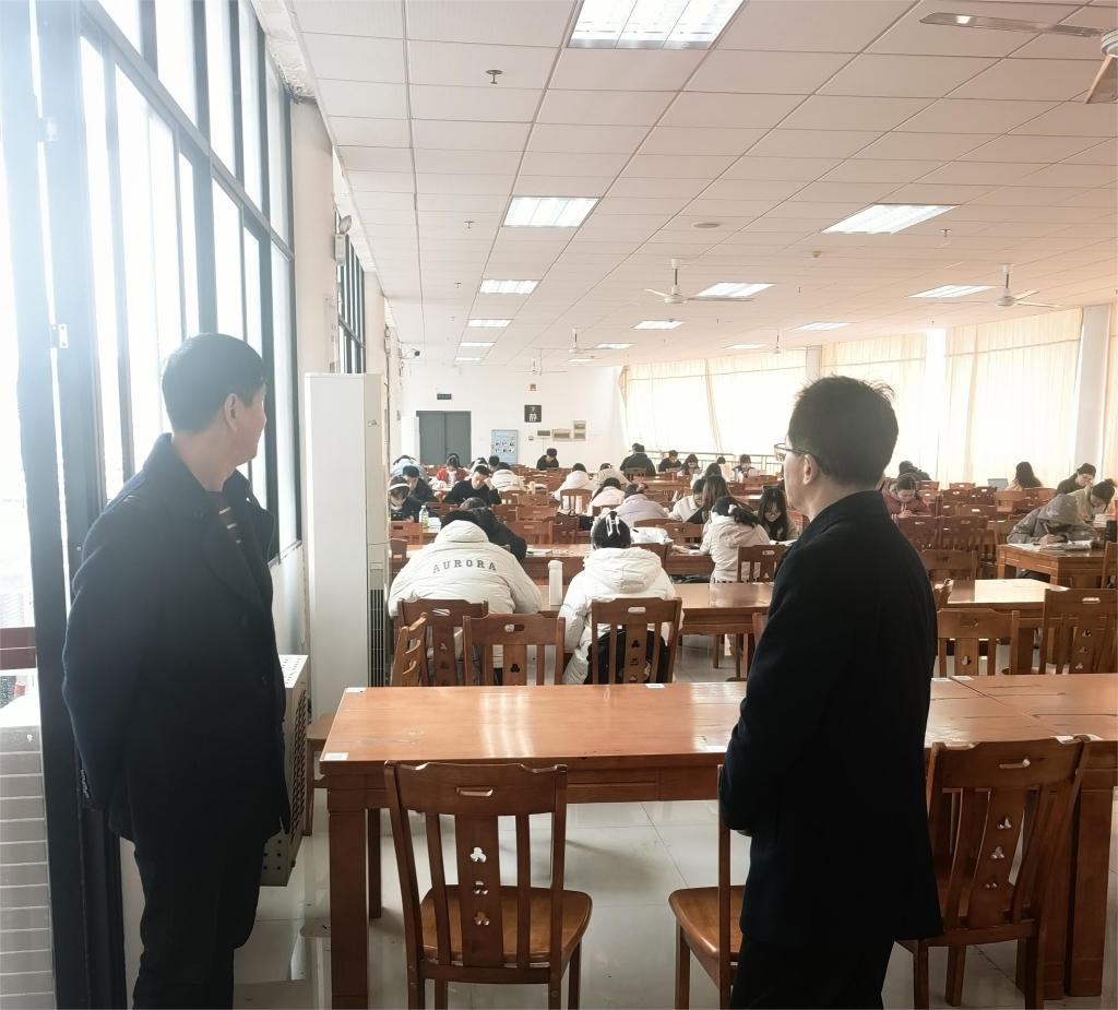 为贯彻党的二十大精神和党的教育方针,全面落实立德树人根本任务,进一步加强教风、促进学风、抓好考风,推进期末教育教学工作有序开展。本周深入教学一线当值校领导党委委员袁勤带队深入课堂、图书馆、自修室、学生宿舍、食堂、学校监控室等场所,对教风、学风、考风进行督查。