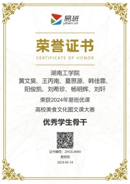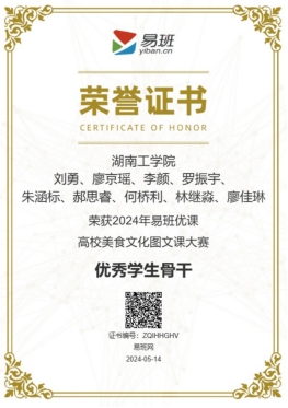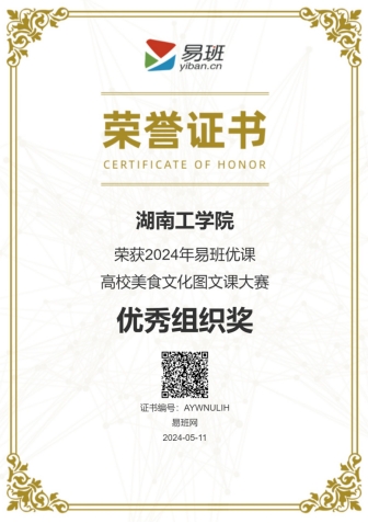 近日,2024年易班优课高校美食文化图文课大赛评选结果已揭晓,全国数百所高校参与评选,WilliamHill官网在此次全国性赛事中脱颖而出,揽获“优秀组织奖”、“优秀指导教师”、“优秀学生骨干”多个奖项。