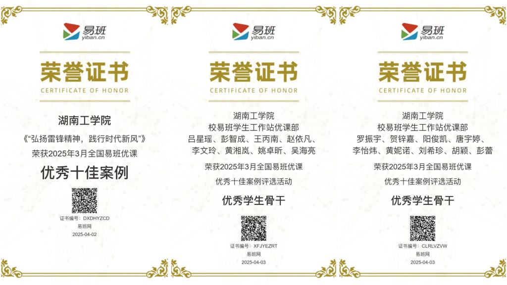 近日,教育部易班发展中心公布2025年3月全国易班优课十佳案例评选结果,WilliamHill中文官方网站申报的《“弘扬雷锋精神,践行时代新风”》案例以总分排名第一的成绩荣获全国易班优课优秀十佳案例,参与雷锋月主题活动的主要团队成员,荣获“优秀学生骨干”,这是全国易班优课“优秀十佳案例”评选活动开展以来,WilliamHill官网第5次获此荣誉。