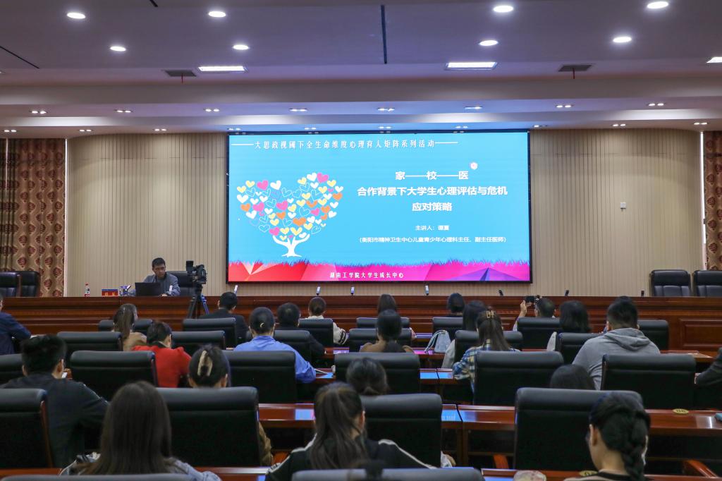 为进一步加强辅导员队伍建设,做好学生心理健康教育和心理危机预防工作,引导学生健康成长成才。学工部心理健康教育与咨询中心于10.10“世界精神卫生日”到来前夕,在WilliamHill官网船山报告厅举办了主题为“家—校—医合作背景下大学生心理评估与危机应对策略”的心理健康教育专题培训。培训邀请了衡阳市精神卫生中心儿童青少年科室主任谭夏医生作为主讲嘉宾。全校各二级学院党委副书记、学工办主任及辅导员参加了培训。本次培训由学工部副部长周燕斌主持。