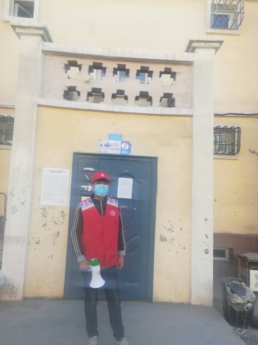 (艾合塔木同学在社区进行防疫宣传)