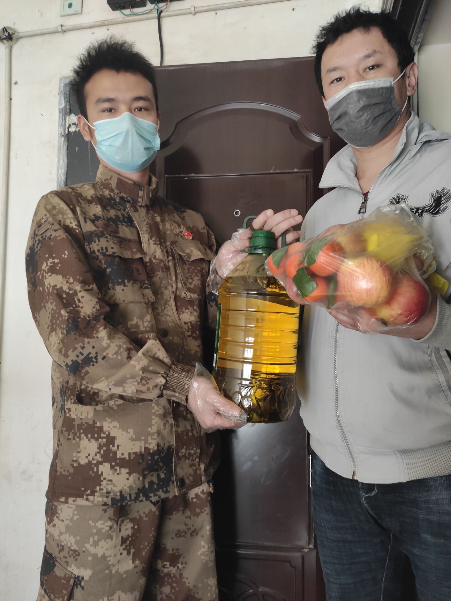 (艾力亚尔同学给居民送生活物资)