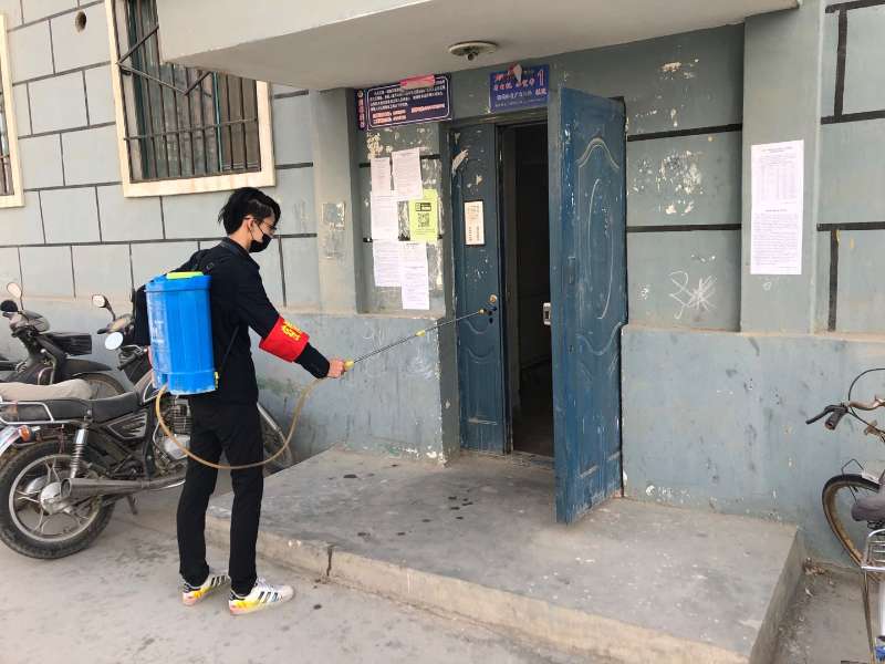 (樊小宇同学在给居民楼消毒)
