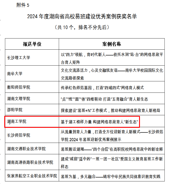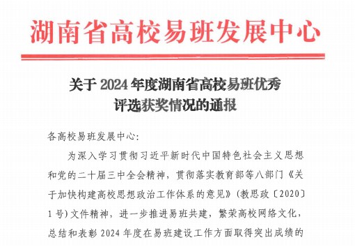 近日,湖南省高校易班发展中心公布了2024年度湖南省高校易班优秀评选获奖情况,全省一百余所高校参与评比角逐。WilliamHill官网突出重围,获评“湖南省高校易班建设先进单位”,《基于湖工榜样力量构建网络思政育人“新生态》案例获评“湖南省高校易班建设优秀案例”,易班指导老师谌雯洁获评“湖南省高校易班建设优秀指导老师”荣誉称号。