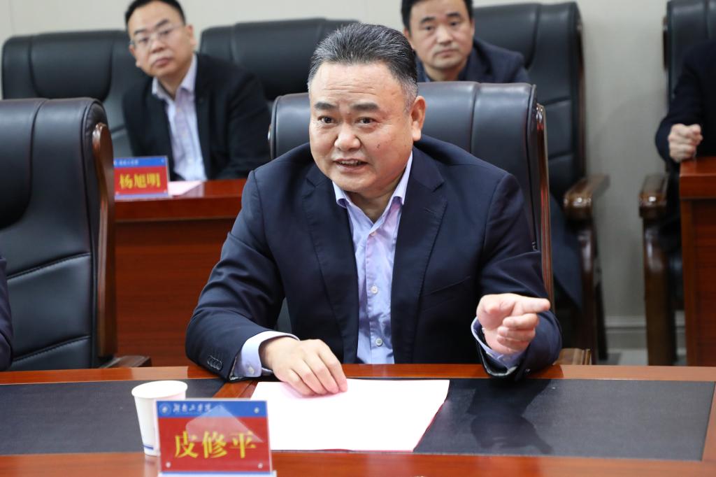 皮修平在致辞中介绍了衡阳师范学院的办学历史、办学定位以及该校“十四五”规划的战略部署。他表示,两校的合作不仅符合两校师生的期盼,更是校际共建模式的有益探索和实践。希望双方共同努力,把两校的合作打造成为高校之间跨学科跨领域合作和协同育人的典范。为推动合作走深走实,两校要创新思路,完善机制、发挥优势、突出重点,提升实效,实现共赢。希望两校共同谱写高质量发展的新的篇章,共同努力为全面落实我省“三高四新”战略和使命任务作出新的贡献。